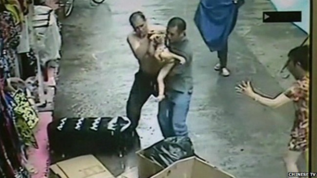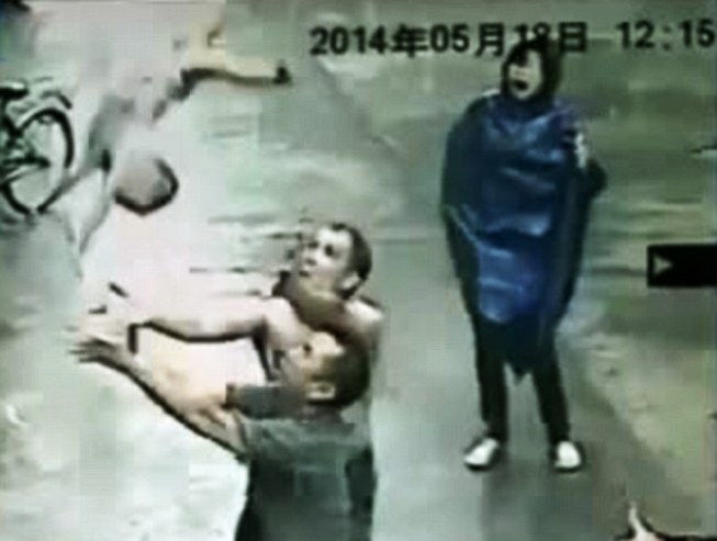 ली नाम गरेका स्थानीय दौडिएर सडक पार गर्छन् र आफ्नो दुबै हात फैलाएर बच्चालाई समाउँछन् । उनीसँगै हु नामका व्यक्ति पनि बच्चा समाउन गएका थिए । यो घटनालाई नजिकै भएकाहरुले हेरिरहेका थिए ।