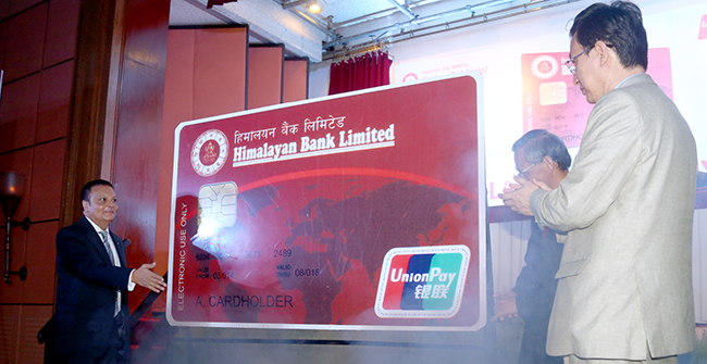 ११ भदौ काठमाडौं । हिमालयन बैंकले अमेरिकी डलरमा आधारित युनियन पे ब्राण्डेड कार्ड सञ्चालनमा ल्याएको छ । चीनको युनियन पे इन्टरनेसनलसँग मिलेर उक्त कार्ड सञ्चालनमा ल्याएको हो ।